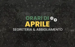 Per tutto il mese di Aprile, la Segreteria Sportiva e il magazzino abbigliamento saranno aperti al pubblico nei seguenti giorni e orari:
